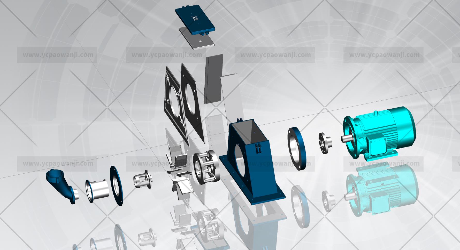 罩殼采用優(yōu)質鋼板焊接而成,罩殼上固定軸、護板及定向套的孔是一次性加工的,從而能使定向套與分丸輪之間的間隙均勻一致,不但減小了分丸輪對彈丸的磨損和將定向套擠裂的現(xiàn)象,同時也大大提高了拋丸效率。