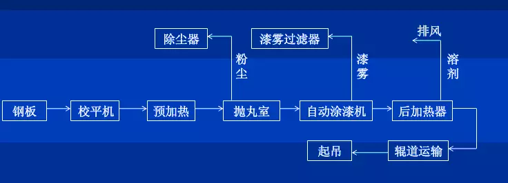 鋼板拋丸預(yù)處理線的工藝流程圖